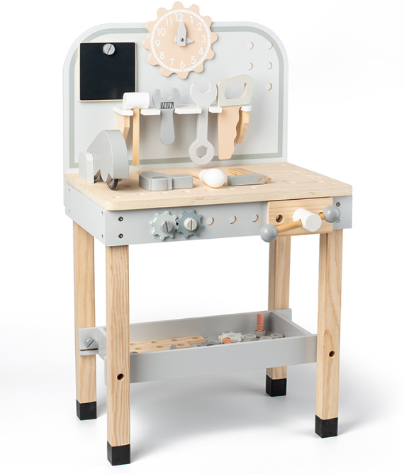 Ideal para pequeños constructores. Este banco de trabajo viene con herramientas, tornillos, piezas para ensamblar y mucho espacio para imaginar y crear.
