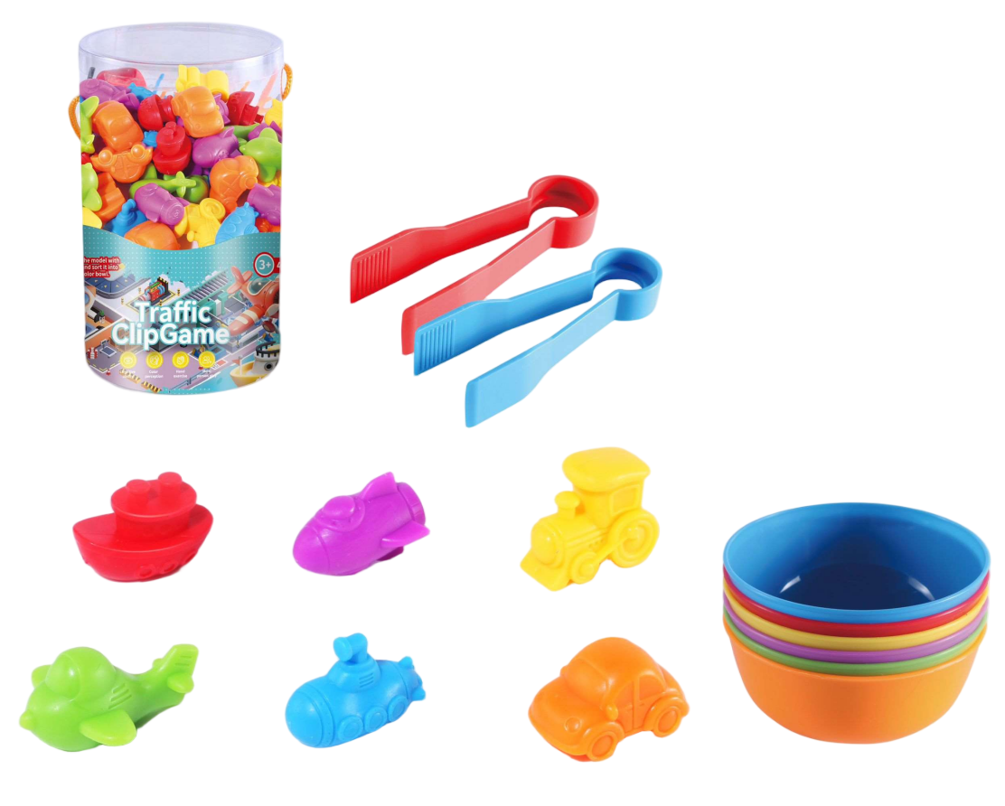 🚗 Incluye vehículos de distintos colores y formas: avión, auto, tren, barco, submarino y más